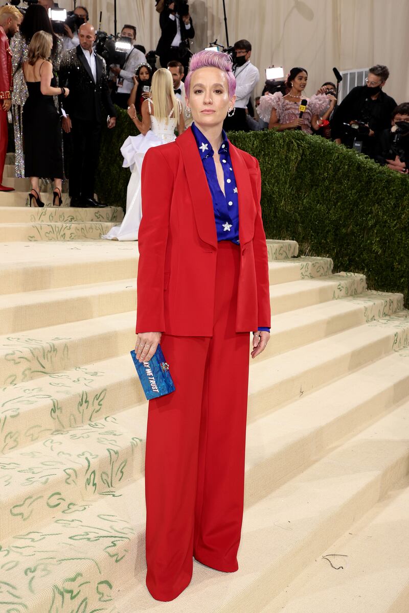 Megan Rapinoe looked quite star-spangled, and had one of the best accessories of the night: a clutch that read “In Gay We Trust.”
