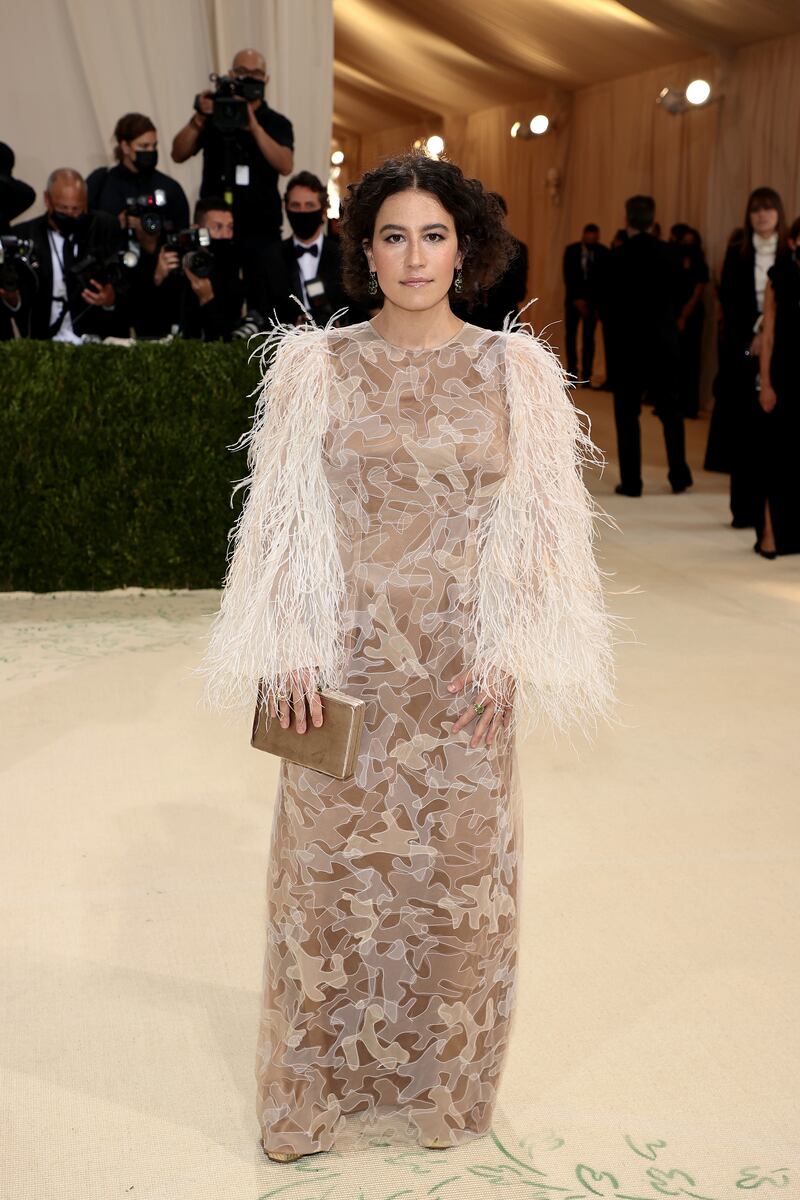 Earlier in the night, Illana Glazer posted an Instagram story of her Met Gala prep, which included breast pumping (the Broad City star became a mom in July). “Making milk,” she said. “Met milk.” And then she slipped into this dramatic feathered number hand-sewn by Jason Rembert of Alietté. Cool mom!
