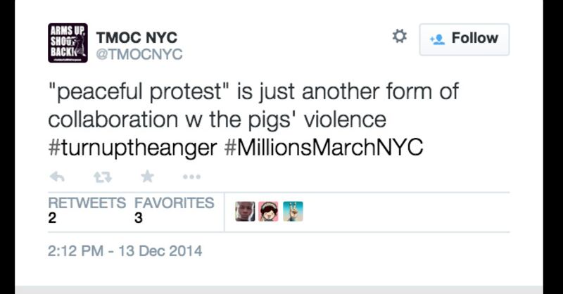 Editor’s Note: this story has been updated with new information about online anti-police messages, and to clarify the nature of the Trayvon Martin Organizing Committee NYC’s relationship to people recently arrested for allegedly assaulting New York City police officers.