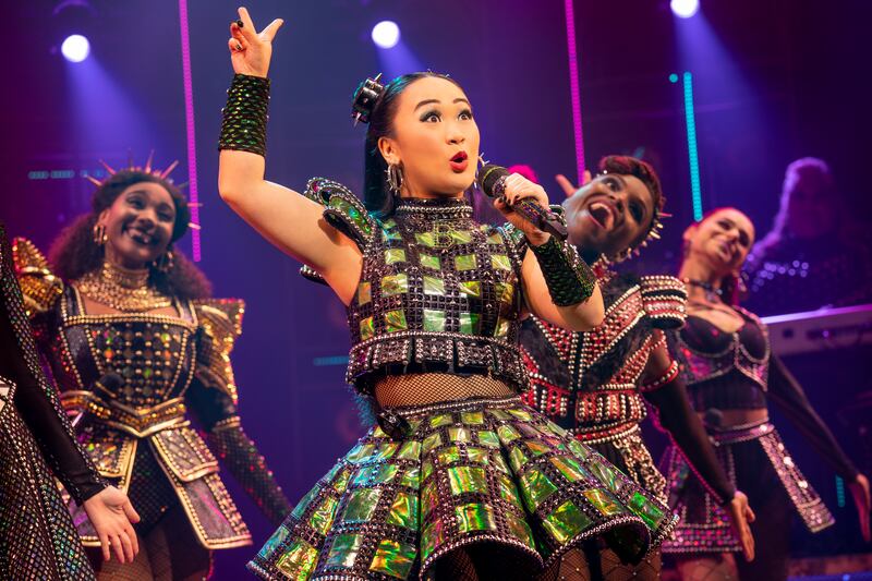 But the real intention of the show is to reveal how all the women are much more than their grouping in the propulsive group opening number, “Ex-Wives,” and their infamous descriptors: “Divorced, beheaded, died, divorced, beheaded, survived.” It is telling that the structure of the show means each queen gets a solo, and when she does, all the other queens support her as backup singers and dancers.