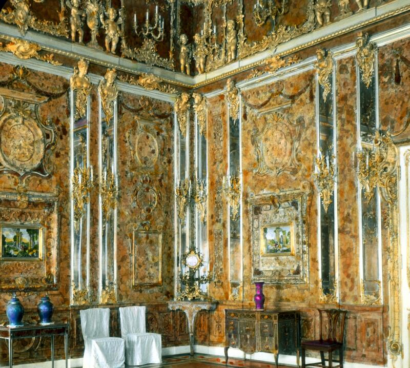 It’s like Mayan ruins lost to time or the fabled city of Atlantis. There once existed a golden room bedecked in floor-to-ceiling amber, gold, and semiprecious stones.