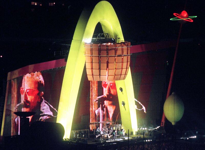 Rather than indulging in an earnest, somber set-list focused on war and healing, the band decided to offer the citizens of Sarajevo a celebration by bringing their ongoing global Pop-Mart tour to the city. Bono’s voice was shredded and he often spoke the lyrics that 45,000 Croats, Bosnians and Serbs who filled the Kosovo soccer stadium sang in solidarity. The band followed Pop Mart tour set list, except for replacing The Edge’s enigmatic Karaoke segment with, appropriately enough, “Sunday Bloody Sunday.” They played the hits: “Where the Streets Have No Name,” “I Will Follow”, “New Year’s Day”, “Gone”, “Desire”, “Pride (In the Name of Love)”, “Still Haven’t Found What I’m Looking For” and “Even Better Than the Real Thing”, which Bono prefaced with the crowd-pleasing incantation: “Viva Sarajevo! Fuck the past, kiss the future,” --- a slogan for a T-shirt perhaps still waiting to happen.