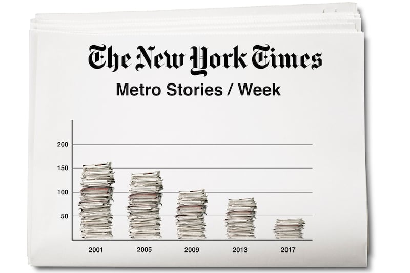 As The Times plans further trims to its New York metro coverage—“less incremental” is the phrase they are using — it is worth noting that there has already been a startling reduction in it over time.