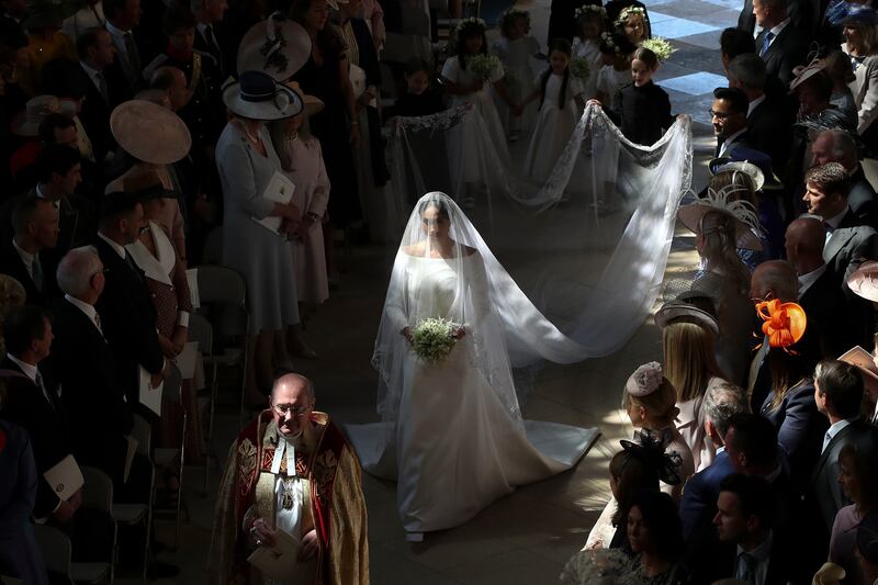 Meghan Markle walked down the aisle in St George's Chapel, Windsor Castle, in Windsor, on May 19, 2018 during her wedding to Britain's Prince Harry, Duke of Sussex.