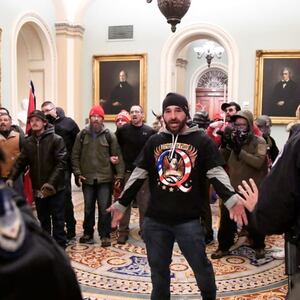 As one of the first people to breach the Capitol and storm the Senate chamber, Chansley was infamously photographed in his eccentric outfit alongside a group of like-minded MAGA rioters. According to a criminal complaint, Chansley was among a small group that stormed the Senate chamber—along with an Air Force vet holding zip ties and an armed Alabama man who said God told him to enter the building.