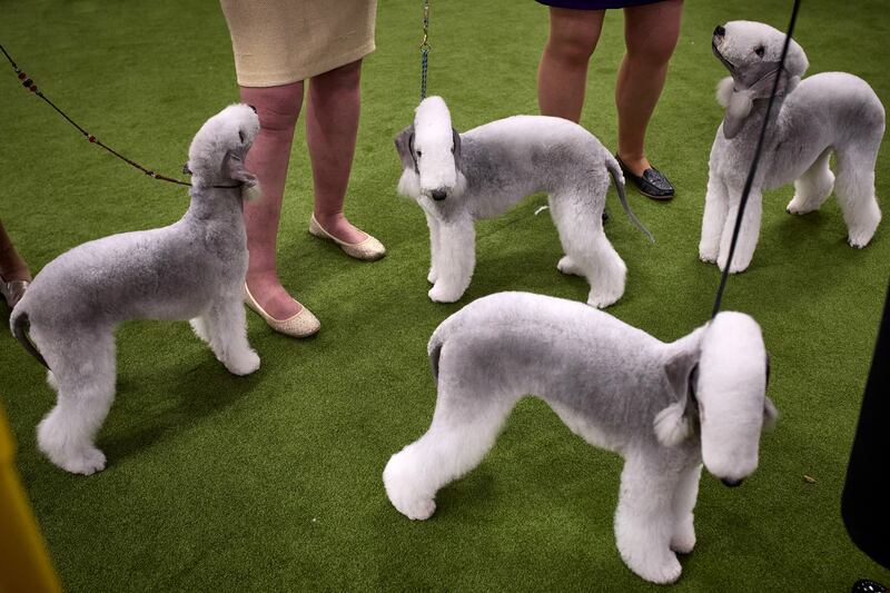Bedlington Terrier dogs look on after a competition during the 149th Annual Westminster Kennel Club Dog Show at Jacob K. Javits Convention Center on February 11, 2025 in New York City. Andres Kudacki/Getty Images