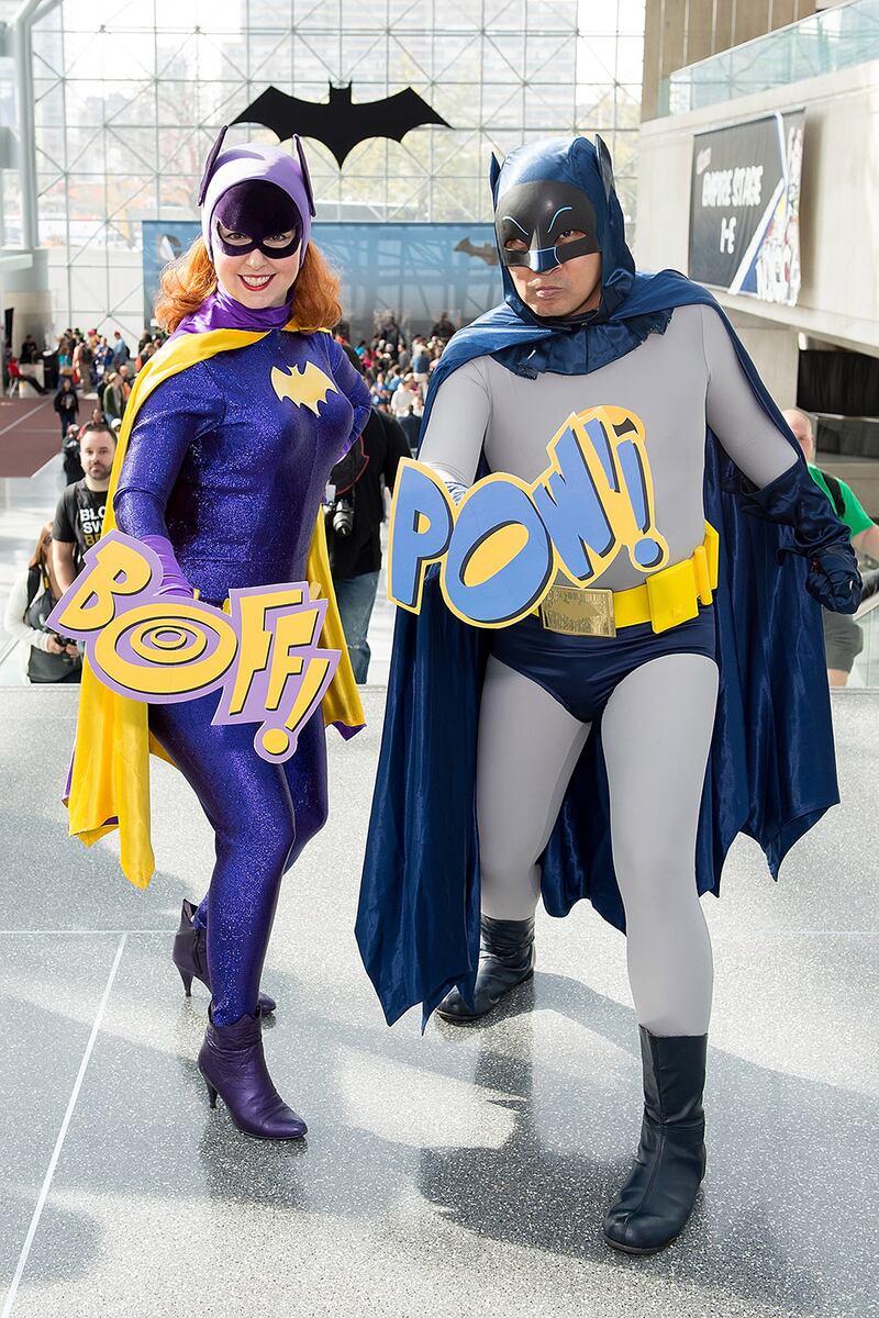 Batman and Batgirl from the 1960s TV show make an appearance. No doubt some of dozens of the Batmans (Batmen?) and Batgirls in attendance.