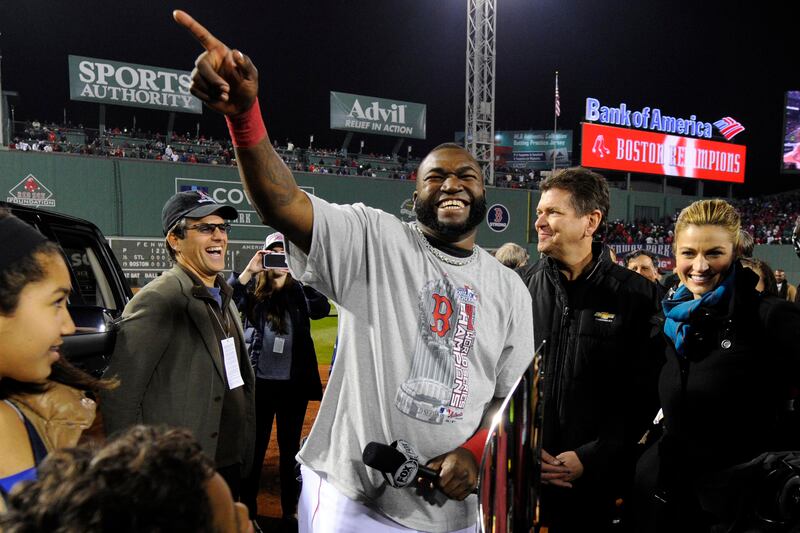 Of course, the Red Sox went on to win game four and game five and then game six to defeat the St. Louis Cardinals and win the World Series. Ortiz absolutely hammered the ball this October—at one point he was batting .733 in the World Series, while the rest of the Red Sox could only muster a .144 average—and was named most valuable player. Boston, for the first time since 1918, celebrated a World Series victory at Fenway Park. Here’s a look at Ortiz’s historic numbers.