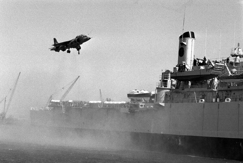 A Harrier coming in to land on the HMS Fearless at Greenwich.