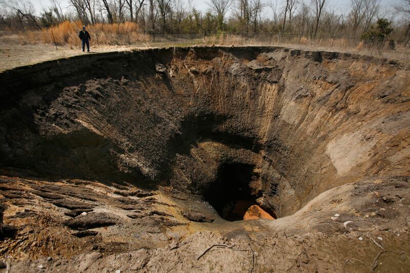 As The Atlantic points out, long periods of drought followed by rain can also set off collapses. Droughts cause groundwater tables to drop, and caves that were once filled with water and were therefore supported by it become weaker. Once rain finally comes, the extra weight of the soaked-through top layer of earth can cause the cave to collapse. And beware of tapping into groundwater for agriculture too, as that can have the same effect as a drought.