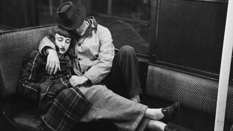 Many were candids shot with a hidden camera, but the standout photo was staged. A backlit couple at the 81st Street station is pressed against a column, the woman grips her man as they gaze longingly at each other, while behind them a man sleeps against a wall. In one extraordinary image, Kubrick captures the potent and illicit stew of love and danger and sex and desperation that burbles under the city.
