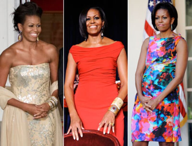 De la Renta’s original gaffe hinted at the ambivalence some in the high-fashion community feel toward the first lady. Mrs. Obama plainly adores dressing up. She takes obvious delight in supporting young American designers like Jason Wu and Thakoon, and occasionally steps out in adventuresome pieces from edgier labels like Comme des Garcons. But she is also a populist figure in a prolonged economic downturn. She tills her own organic garden, busies herself fighting childhood obesity, and traipses with the girls back and forth from Air Force One in J. Crew cardigans and occasionally—shudder—capris. Her embrace of American sportswear has been sporadic and conditional. Not even an aggressive campaign led by Oprah Winfrey herself could get Mrs. Obama to turn out for last week’s Costume Institute Gala at the Met.