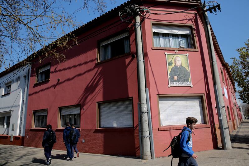 Children walk past the Antonio Provolo Institute in La Plata, Argentina, Thursday, Sept. 6, 2018.