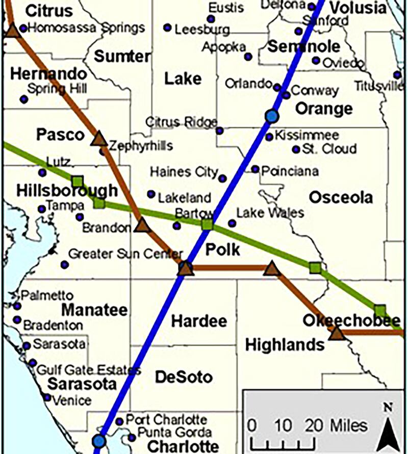 Where the paths of the three major hurricanes intersected in Polk County, Florida.