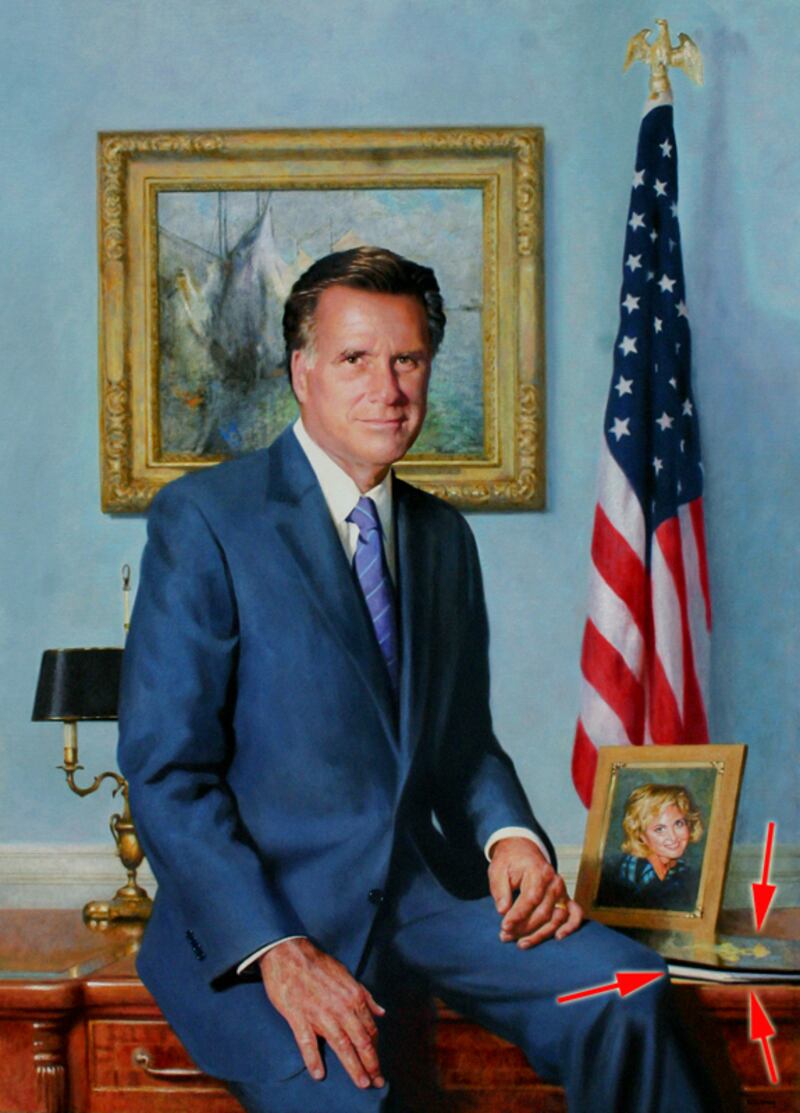 Proof that Mitt Romney suffers from double Romnesia comes with an easy-to-miss detail that he insisted on in his official portrait from his one term as governor of Massachusetts.