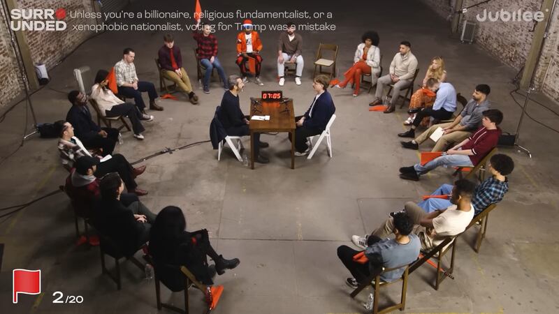 I almost made it to the hour mark. For close to sixty (long) minutes, I allowed my blood pressure to fizzle and pop before I had to turn the damned thing off. I simply couldn’t endure the latest release in the popular “SURROUNDED” debate series, produced by the viral video factory Jubilee Media, in full. At ninety minutes, that video features the liberal commentator Sam Seder debating twenty young conservatives. It did not go well for them.