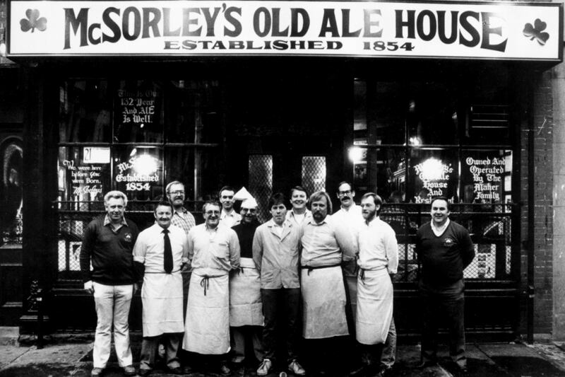 McSorley’s has always been more than just a bar. In its stubborn, even fanatic resistance to change and its accumulation of random artifacts it’s like a physical version of the memory-palaces that scholars of old used to build in their minds, where each room was furnished and each piece of furniture brought forth a story. Through McSorley’s, you can reconstitute a whole, vanished New York, a sooty, low-rise city of brick and brownstone that smelled of hay and horseshit and cheap oysters where men wore hats and women shawls and everybody thronged and seethed and practically lived on the street. And, of course, where their sons stuck wishbones up on a gas lamp before going off to war and wished that they would come back to snap them.