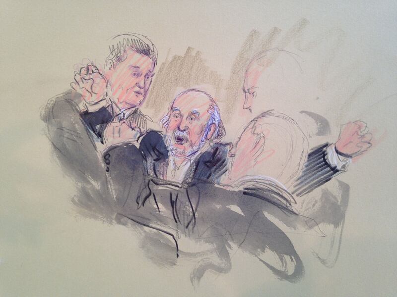 Two of her most memorable court experiences came early in the new millennia. “I was working for CNN back then,” she says, “and they wanted me to go to court everyday to cover the Microsoft trial.” In early 2001, the government sued Microsoft in United States vs. Microsoft Corp. in an antitrust suit, claiming the tech powerhouse held a monopoly and engaged anti-competitive practices. With typically only one witness called to the stand each day, Verkouteren had “plenty of time to do detailed drawings.” While there were major players called to the stand, “that wasn’t really an exciting case,” she admits. “I didn't even understand half of it.”