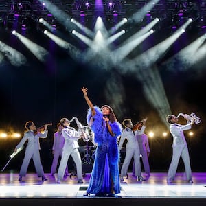 Jones give Laurey a commanding toughness. She and Daunno flirt with each other, drop each other, and keep each other in sight as they sing “The Surrey With The Fringe On Top” and “People Will Say We’re In Love.” Just watching them both will make you smile and blush.