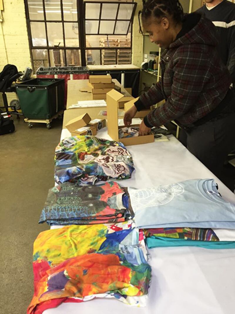 “We utilize the community on every level. From the people who make the art, [to] the people who sell the art, [and] the people manufacture the products,” Schwartz says. “It’s completely run by people with disabilities in their lives, and what I do is just curate that.”