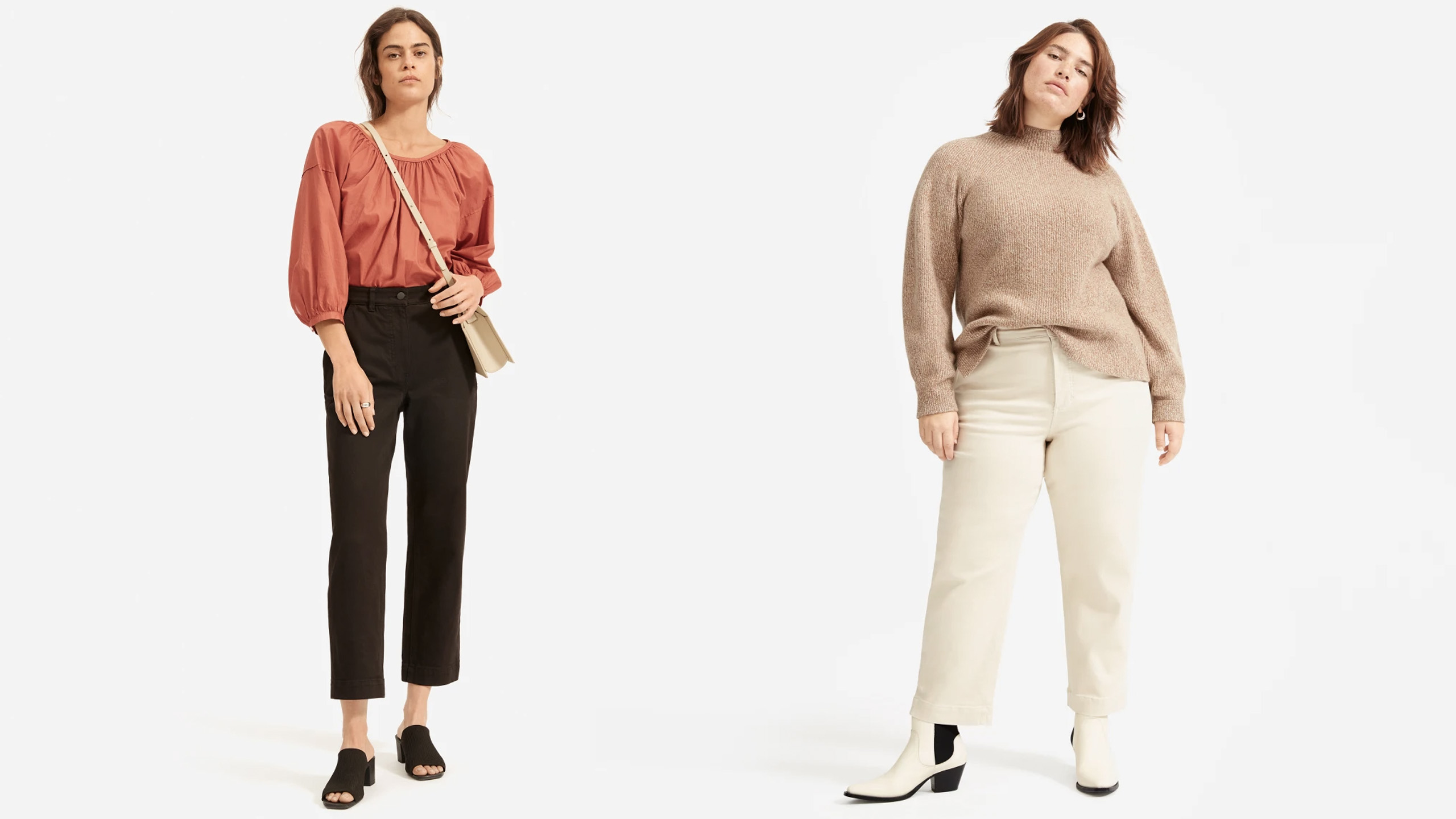 The Slim version of these are a personal favorite of mine, so much so that I would rather wear them than jeans. The Straight Leg Crop comes in a bunch of different colors, from neutral black to bold yellow. They’re really made for anyone, as they come in three different lengths: short, regular, and tall. Made from cotton with a touch of elastane for stretch, these are pants that you’ll be comfortable in all day. The Crop Pant line is a staple of Everlane’s women’s bottoms. It comes in straight (which is the one on sale), slim, and wide-leg, so you can choose your favorite silhouette.