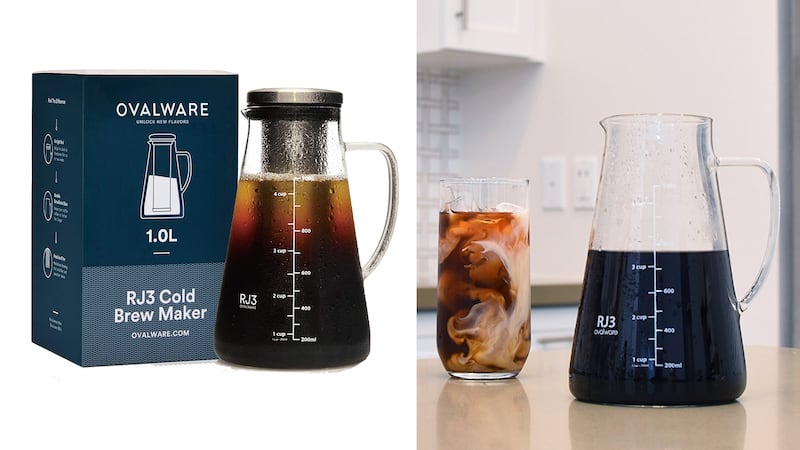 Ovalware Cold Brew Iced Coffee Maker and Tea Infuser, $30 on Amazon: This beaker-inspired coffee maker boasts a 4.3-star rating out of over 1,700 reviews. Its air-tight cap means you can keep your brew tasting fresh and flavorful for up to two weeks.