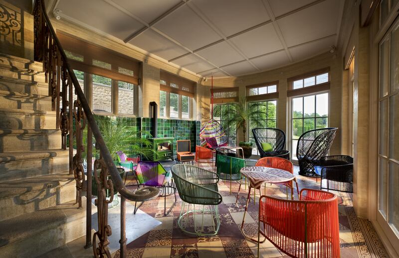 Kelly Caminero/The Daily BeastIn the Library guests can enjoy a cup of tea as they are greeted with an exuberant interior design heavily inspired by a Georgian family home with a youthful twist. A dynamic cool palette of blues, greens, and magenta occupies the space balancing the owner’s appreciation for nature and authenticity.