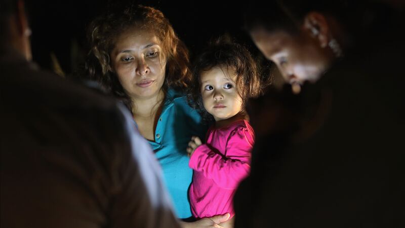 Central American asylum seekers, including a Honduran girl, 2, and her mother, are taken into custody near the U.S.-Mexico border on June 12, 2018 in McAllen, Texas.