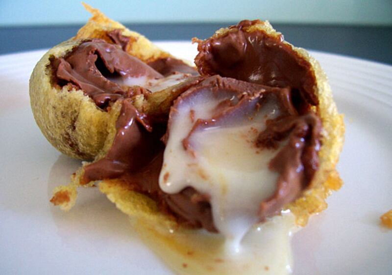 “This was also submitted by a user,” says Amason. “ We think these might exist at street fairs because we've received more than one. Cadbury Creme Eggs are already so rich and indulgent, can you imagine a fried one?” Amason adds that though as the blog founders she and Richard Blakeley see many pictures of fattening food, they rarely eat it. ”But we’ve been known to eat deep-fried Oreos. Most of the deep-fried stuff on site I would probably eat. But we do have a deep-fried cheeseburger that I think goes too far. It’s like…why?”