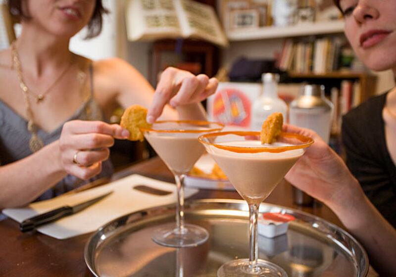 The McNuggetini, a chocolate milkshake mixed with vodka, rimmed with barbeque sauce, and garnished with half a chicken nugget, is the creation of two female friends of Amason’s. “This one is near and dear to my heart, no pun intended,” she says. “We worked with them to get this featured in the book as well as blog, and now they have a book deal of their own, highlighting the world’s fattiest cocktails.” It’s one big, jiggly family.