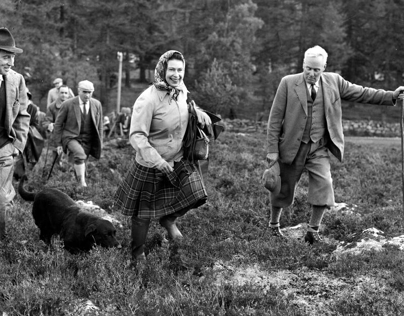 Queen Elizabeth II with her dog Wren at the Open Stake Retriever Trials at Balmoral, October 6, 1967.