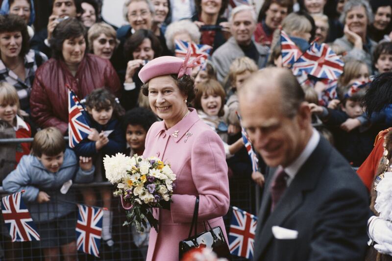 Queen Elizabeth II and Prince Philip meet the public on a walkabout in Kent on Oct. 31, 1984.