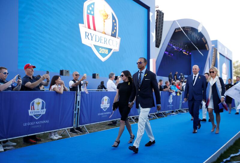 Woods and Herman during the opening ceremony of the 2018 Ryder Cup in Guyancourt, France