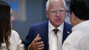 Minnesota Gov. Tim Walz speaks at a campaign rally in Eau Claire, Wisconsin.