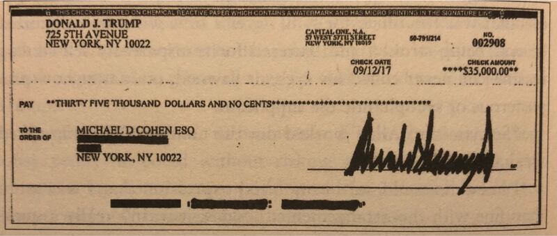In the end, Cohen fronted the money by tapping the home equity line of credit for his family’s apartment at Trump Park Avenue. By his own telling, he wired the $130,000 to a trust account managed by Daniels’ Beverly Hills lawyer, and in return, he got Daniels’ signed non-disclosure agreement. The Trump Organization then reimbursed and rewarded Cohen in the form of 11 checks split over the course of a year, totaling $420,000.