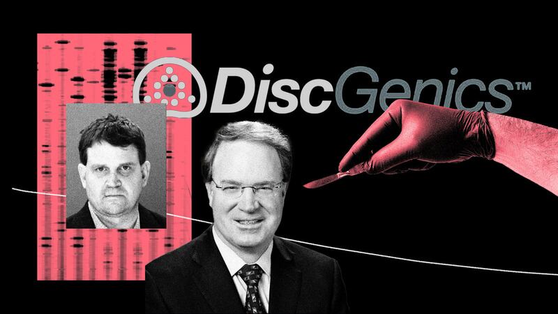DiscGenics was founded around 2007 by disgraced Texas neurosurgeon Christopher Duntsch, left, nicknamed Dr. Death for paralyzing and killing patients. Dr. Kevin Foley, right, who currently serves as chief medical officer, was Duntsch’s supervisor.