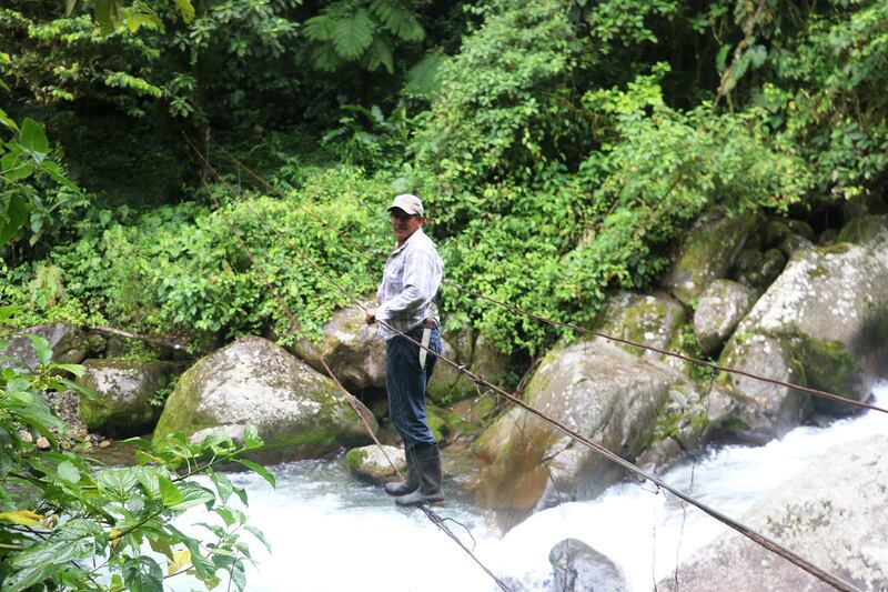 To get to the spot you have to pass over a simple but effective three-cable bridge, constructed by the Ngobe, that spans the river and joins the trailheads on either side. You want to cross slowly, Vejerano cautions, and only one person at a time.