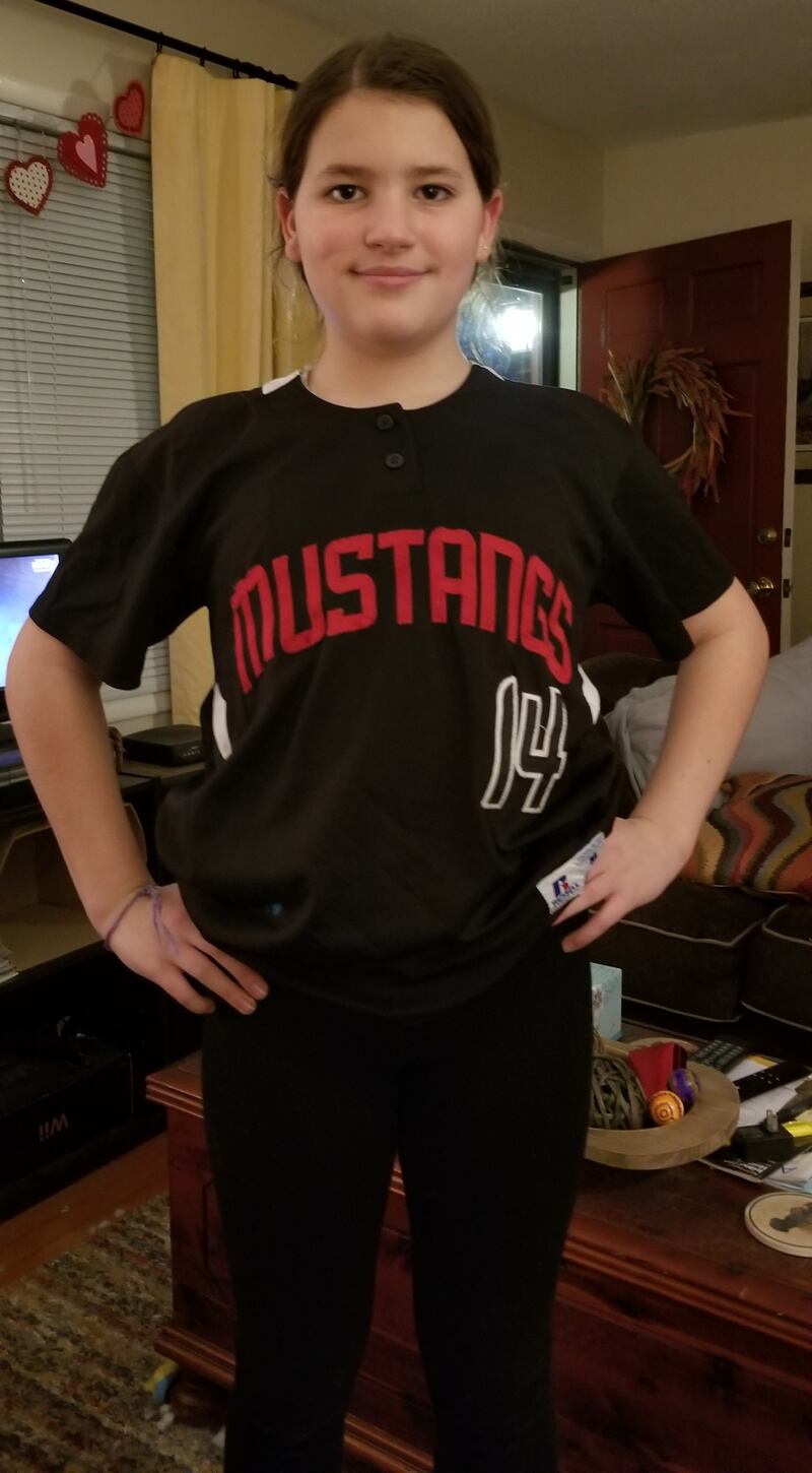 Madi in softball garb, 2019-2020 (7th grade)