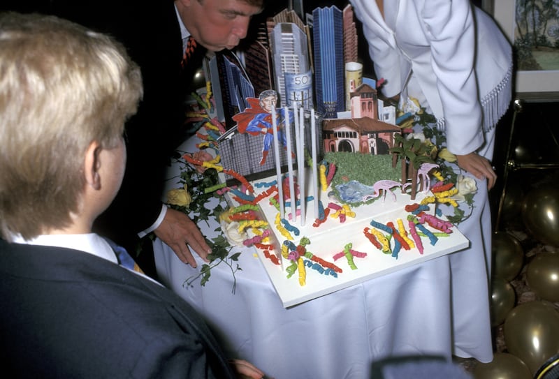 Donald Trump blows out the candles of his birthday cake at his 50th Birthday Party at Trump Tower in New York City, 1996. (Photo by Ron Galella/Ron Galella Collection)