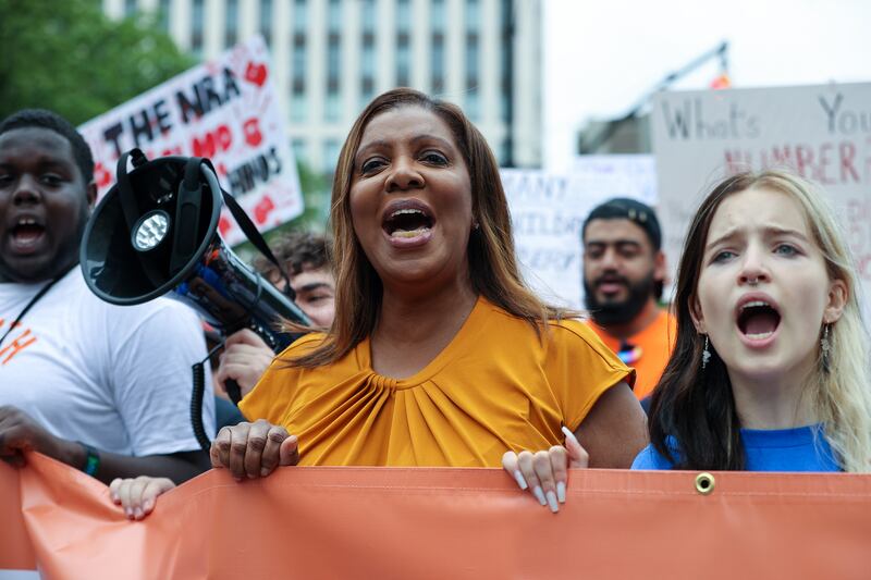 Attorney General New York Leticia James attends a gathering around the Cadman Plaza during the 'March For Our Lives' demonstration in New York City, United States on June 11, 2022.