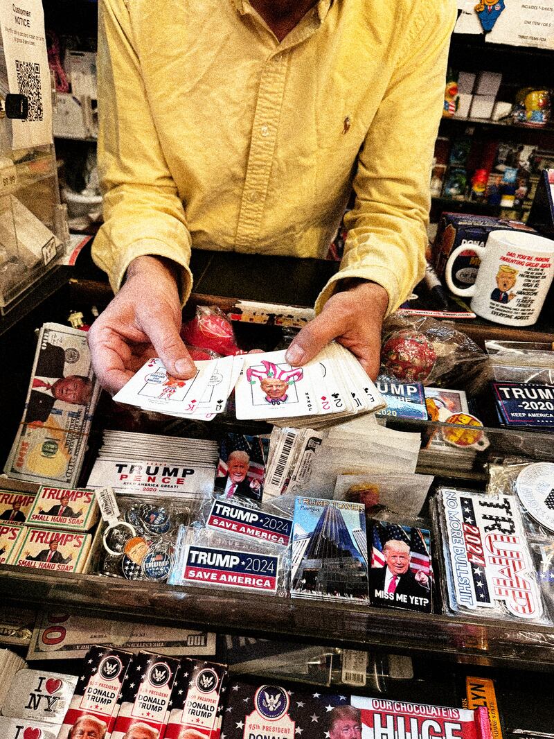I asked the clerk to name the store’s most popular gift item. He grabbed a deck of $15 Trump Presidential Playing cards. “We sold 7,000 decks,” he said.