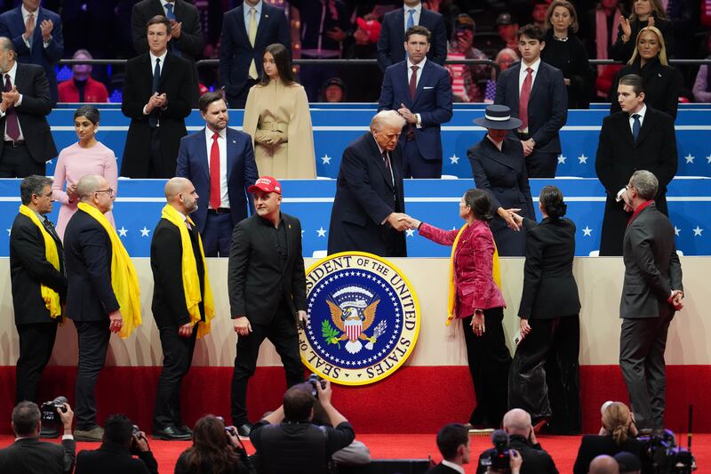 Trump eventually announced the first executive orders to the crowd: rescinding 80 executive orders signed by Biden, issuing a “regulation freeze,” an order directing his Cabinet to bring down inflation, withdrawing from the Paris Climate Accords, end the “federal government censorship of the American people,” and instructed federal law enforcement agencies to preserve all records of “political persecution” under the previous administration.