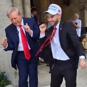 On other days, Ross’ guests have included white nationalist Nick Fuentes and accused human trafficker Andrew Tate—but on Monday afternoon, Ross was seated beside Trump in the former president’s ornate living room. Ross matched Trump’s dark blue suit, red tie and white shirt, but added a white Make America Great Again hat.