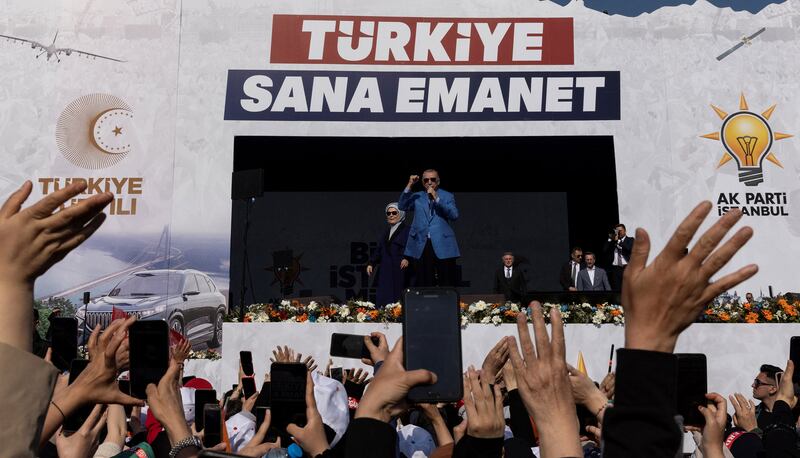 Turkish President Tayyip Erdogan addresses his supporters during a rally in Istanbul, Turkey.