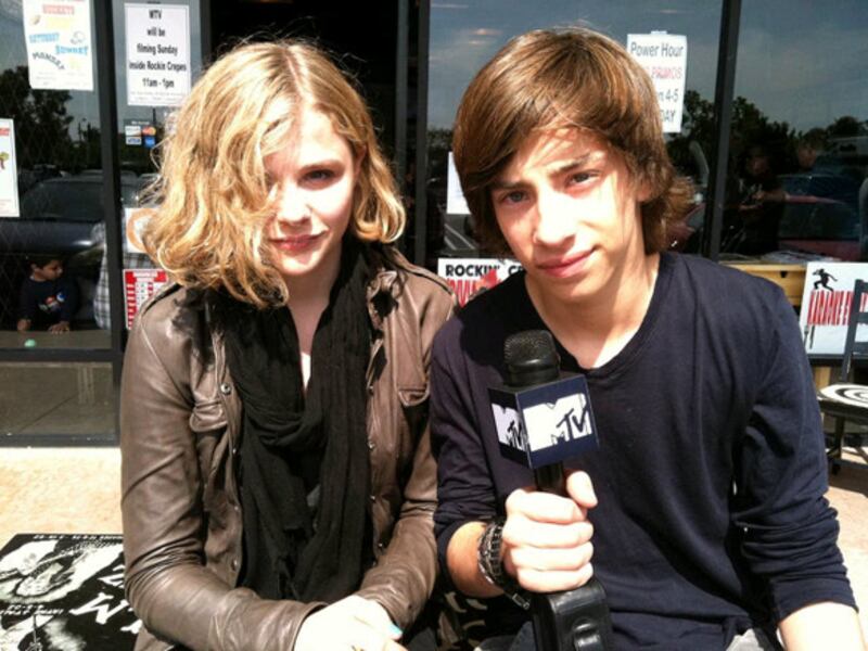 Fourteen-year-old Chloe Moretz has a slew of films in the works, including the comedy film made up of short segments, Movie 43, and the forth-coming Martin Scorcese film, Hugo Cabaret, which is set for release this November. In this pic, Moretz and Movie 43 co-star, Jimmy Bennett host an MTV show in front of the Huntington Beach restaurant Rockin' Crepes.