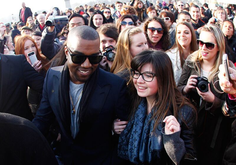 It was recently revealed that Kanye West attended numerous fashion shows during Paris Fashion Week uninvited – and crashed the front row. But from the looks of a recent twitpic, he was certainly embraced by fans. West tweeted a picture of himself in the crowd outside the Balmain show: "Photo from paris last week."