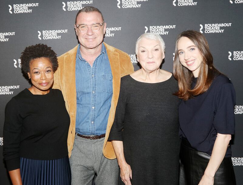 (l to r) Quincy Tyler Bernstine, Liev Schreiber, Tyne Daly and Zoe Kazan pose at a photo call for the revival of the Roundabout Theatre Company production of play "Doubt: A Parable" at The Knickerbocker Hotel on January 10, 2024 in New York City.