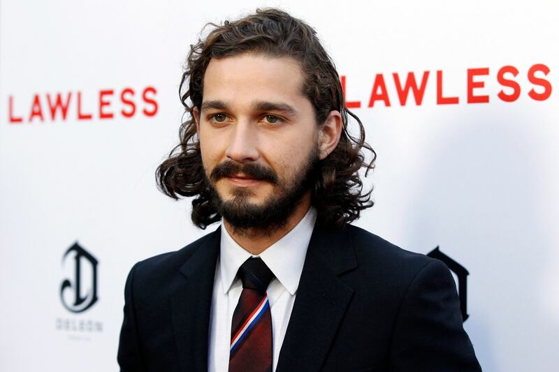 Look at that look in Bearded Shia LaBeouf's eyes. He knows he's not pulling it off.