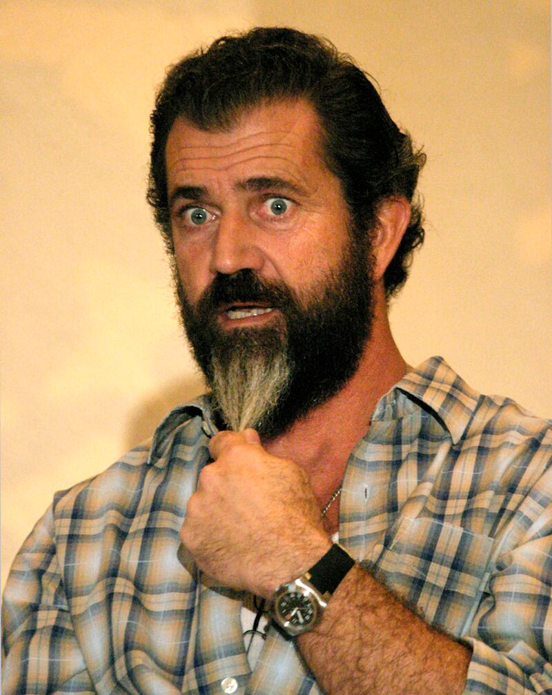 Mel Gibson is actually mirroring the look in everyone's eyes when they first see him with that beard.