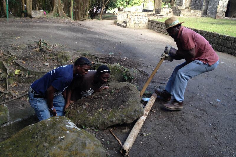 There’s no evidence of the generations of misery slaves endured on site today. For the past 200 years, the Jeaffreson-owned Red House Plantation together with the Wingfield estate have been called Romney Manor (no relation to the presidential candidate). That’s where I joined a group of volunteers to look for answers in the soil about what may have happened here.